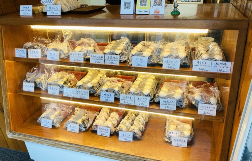 お米は大ガス釜で炊き上げたこしひかりを使い、具材ぎっしりのおむすびが人気です。
